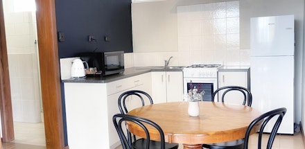 Open plan living area with full kitchen and dining, lounge (daybed and 2 tub chairs) with smart TV, bathroom, split system reverse cycle air-conditioning, outdoor patio with outdoor table and chairs. Private driveway parking beside the cabin for one vehicle. All Cabins are non-smoking, with linen supplied and free unlimited Wifi.
