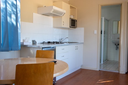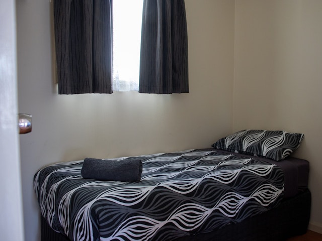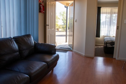 These cabins have a large living area with lounge and kitchenette. The kitchenette has cooking utensils, crockery, cutlery, bar fridge, gas cook top, and a microwave. There are two separate bedrooms one with a queen bed, the other with a single bed, both with ceiling fans. Each cabin is equipped with Televisions and split system air conditioning.