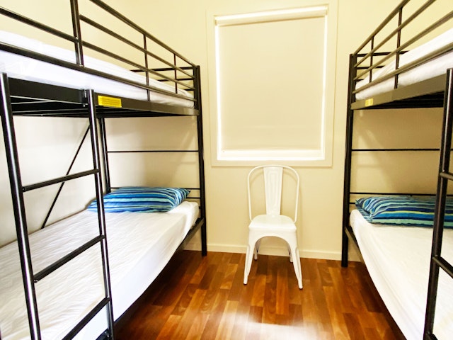 Our 6-berth cabins feature double beds and bunk beds, and a well-appointed kitchenette. Please note that there is no ensuite bathroom, but other amenities are just a short walk away. Amenities include a kitchenette with a television, a dining table, a double bed with provided linen and towels, bunk beds with linen available for hire, and reverse cycle heating and air conditioning.