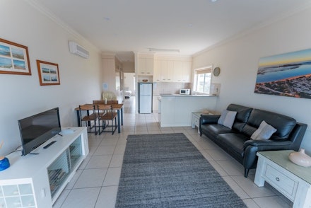 Imagine waking up to sun and surf in beautiful Beachport, in an apartment with stunning 180-degree views. Just across the road, you can enjoy swimming at a gorgeous surfing beach. A two-minute walk takes you to the town center, where you'll find restaurants, bars, and shopping. The apartment features a full-size kitchen, luxury leather lounge, TV, spacious dining area, spacious bathroom, laundry facilities, reverse cycle heating and air conditioning, cutlery and crockery, and included linen.