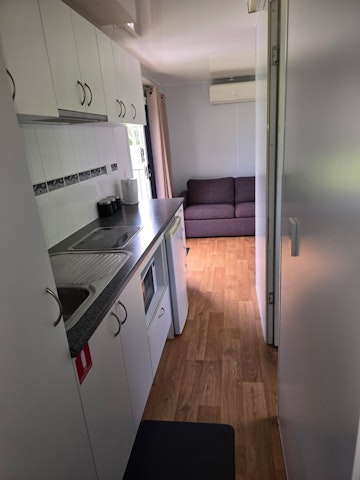Our couples retreat cabin is fully renovated with a double bed at one end, the bathroom in the middle and the kitchen diding at the other end. Has everything you will need. It has heating and cooling and parking for 1 car.