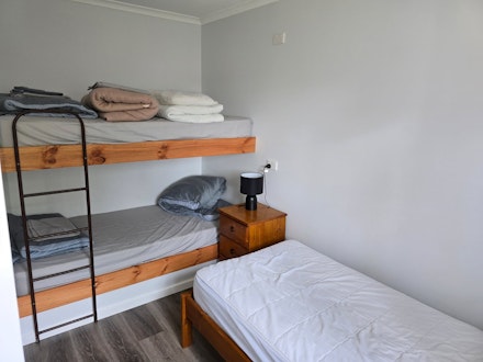 Our large family cabin has what you need for 1 night or more than a week! It is fully self contained. It has a double bed in the main room and a separate room for the bunk set and single bed. It has air conditioning and heating, cooking facilities and cook ware. It also has an ensuite. There is parking for 1 car.