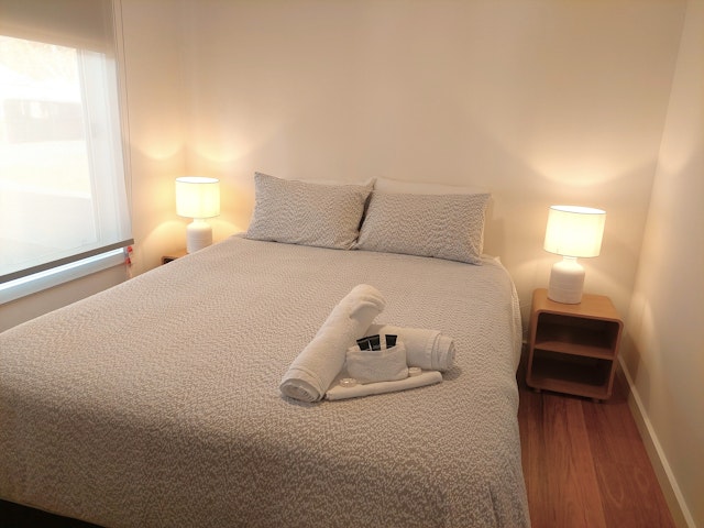The first bedroom features a Queen bed and a TV, while the second bedroom includes a Queen bed and a single bunk bed. There is also an additional bathroom. These cottages offer the perfect blend of comfort and convenience, allowing you to relax and unwind in style. The fully equipped kitchen lets you prepare your own meals, and the spacious living area is ideal for spending quality time with loved ones. The BBQ on the deck adds a touch of luxury, enabling you to enjoy delicious meals while soaking in the natural surroundings.