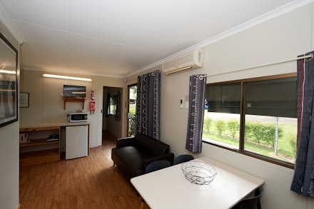 These two bedroom cabins are squeaky clean and super cozy! Equipped with all the comforts to make your stay practical and enjoyable, including a bathroom and reverse cycle heating and cooling.