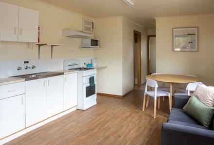 Enjoy the convenience of an en-suite bathroom and a well-equipped self-catering kitchenette, complete with a microwave, hotplates, and fridge. Relax and unwind with entertainment provided by the TV and stay comfortable year-round with reverse cycle air conditioning.