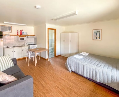 Enjoy the convenience of an en-suite bathroom and a well-equipped self-catering kitchenette with a microwave, hotplates, and fridge. Relax with entertainment provided by the TV and stay comfortable year-round with reverse cycle air conditioning.