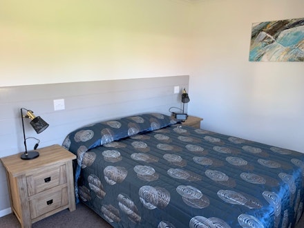 Thoughtfully designed for accessibility, this modern two-bedroom cabin sleeps up to five. The main bedroom has a queen bed, while the second offers a single bed and a set of single bunks. It includes a roll-in shower, grab rails, and spacious layout for ease of movement. The fully equipped kitchen features a gas oven, cooktop, microwave, and fridge. Air conditioning, a TV, and undercover deck overlooking the waterslide make it a comfortable and inclusive coastal retreat.