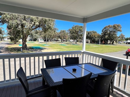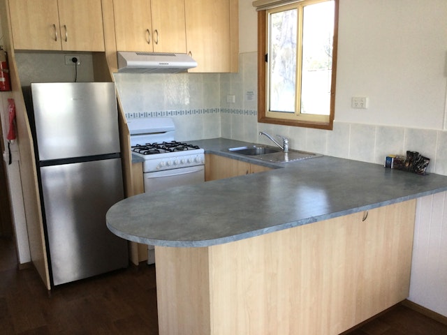 Centrally located near the pool and play areas, this two-bedroom cabin sleeps up to six with a queen bed and two sets of bunks. Enjoy a self-contained kitchen with gas oven, cooktop, microwave, and full-size fridge. The air-conditioned lounge and dining area offers space to relax, while the undercover deck is perfect for alfresco meals. With a bathroom, separate toilet, and modern conveniences, it’s an ideal choice for families wanting comfort and convenience.