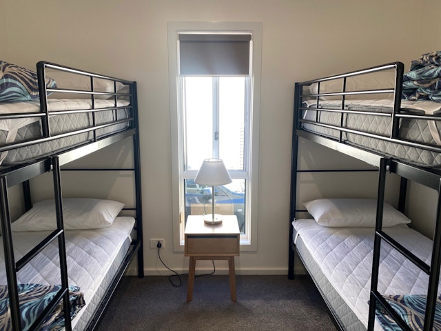 Perfect for large families or groups, this spacious three-bedroom cabin sleeps up to eight with two queen beds and two sets of bunks. Enjoy two bathrooms, including a private ensuite, plus a full kitchen with gas oven, stovetop, microwave, and full-size fridge. The air-conditioned living and dining areas offer plenty of space to relax, while the undercover deck is ideal for outdoor meals. Located poolside, it’s the perfect spot for a fun and comfortable coastal getaway.