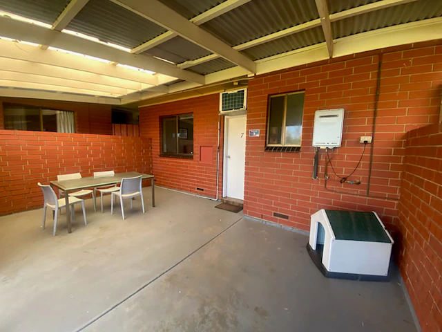 This pet-friendly two-bedroom unit is perfect for families, sleeping up to six with a double bed and two sets of single bunks. The kitchenette includes an electric cooktop, microwave, full-size fridge, toaster, and kettle. Inside, enjoy air conditioning, a dining area, and TV, while outside features a fully fenced undercover patio with artificial turf and kennel. Positioned at the front of the park, it’s a great base for travellers with pets.