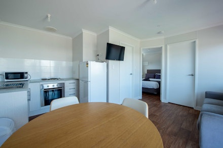 Inside there is a new and fully equipped kitchen including an oven, fridge and microwave. The main bedroom has a double bed and the second bedroom contains 2 sets of bunks. The unit also has a flat screen TV and an outdoor table to enjoy and take in the beautiful surroundings.