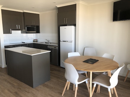 Our beachfront apartments are fully self-contained, have a modern interior and will exceed your expectations. They include 3 bedrooms and 2 bathrooms with a king bed in the main room, queen bed in the second room (can be split into 2x single beds) and 2 sets of bunk beds in the third room (4x single beds). The main bedroom is complete with an ensuite and smart TV. Other features include a washing machine and dryer, split system heating/cooling, dishwasher and exclusive outdoor seating area.