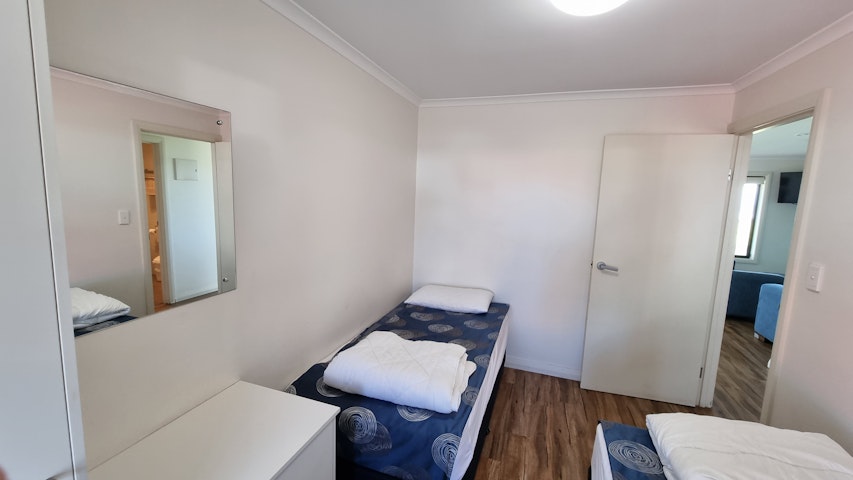 These newly renovated units are fully self-contained and include 2 bedrooms and 1 bathroom. The main room has a queen sized bed and the second room has 2x single beds. Other features include a dishwasher, flat screen TV and split system heating/cooling.