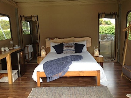 Perfect for couples who want to escape daily life. The tents offer a queen size bed, and a spacious bathroom with shower, toilet and hand basin. The tents also contain a camp stove and bar fridge. Welcome tea, coffee and milk are provided. Positioned to take in the views of the Tamar River, the perfect spot to enjoy a glass of Tamar Valley wine and watch the sunset over the river.