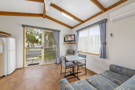 Sleeps 2 1 Bedroom Queen bed with linen supplied Fully self contained kitchen Fridge Microwave 2 LCD TV Split system heating & cooling Front deck with outdoor furniture Private parking space