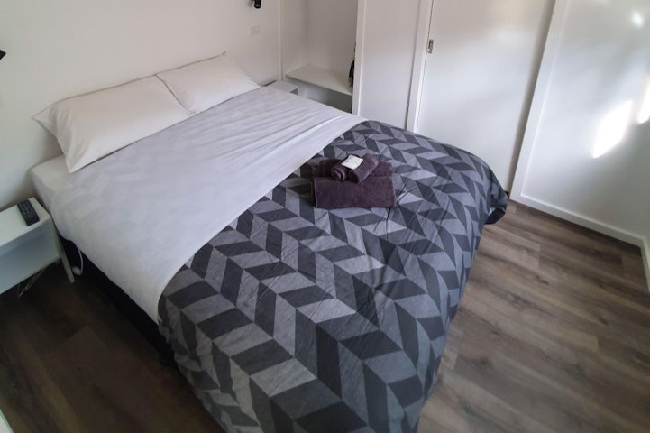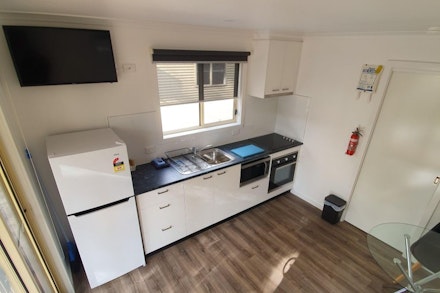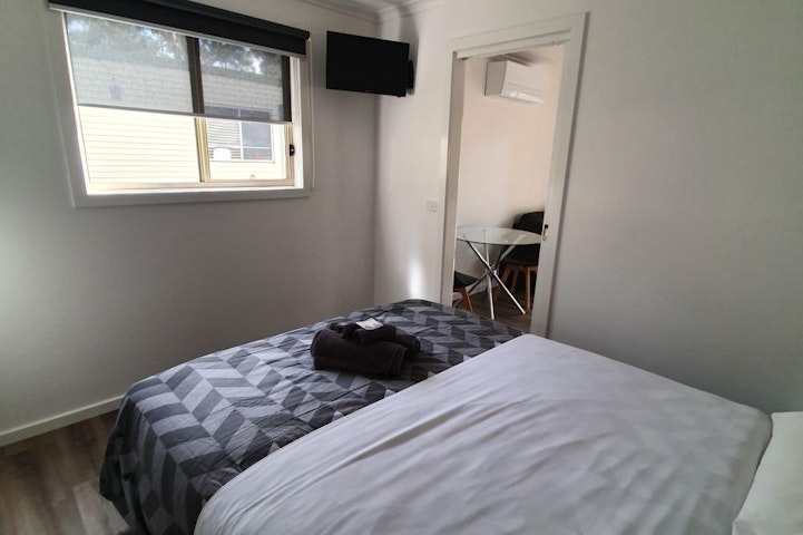 Our 1 Bedroom Villas include a queen bed in a separate bedroom. Fully equipped kitchen including oven, reverse cycle heating and cooling, TV, DVD player, couch and dining setting, ensuite, deck with outdoor setting, private parking next to the cabin.