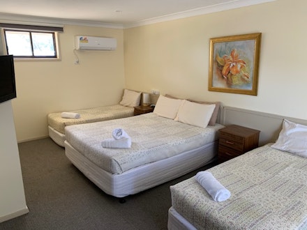 Standard Room with 1 x Queen Bed and 2 x Single Beds, suitable for up to four people. Microwave, toaster, tea and coffee supplies, free wifi. Located in a quiet off street location.