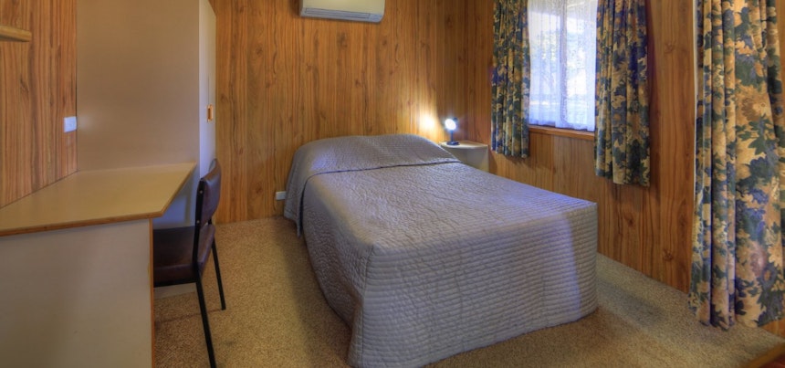 These budget cabins ideally sleep a couple or family with young children. They offer a double bed in the main living area and two bunk beds in a bedroom with a closing door. The cabins are fully self-contained and have good heating and cooling, flat screen televisions and cooking facilities including a microwave. Electric blankets are provided on the main bed, pillows to all beds.