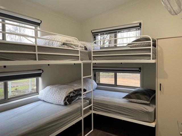 Brand new two bedroom waterfront villa with 1 x Queen Bed and 2 x Single Bunk Beds. Reverse cycle aircon, kitchen including oven, fridge, TV, plates, cups & cooking utensils. Tea & coffee, toaster. Linen on main bed provided, including towels.