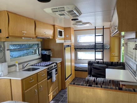 Enjoy a comfortable and convenient stay in our Wattle Van, perfectly located just a short walk from the main amenities. This on-site van is an ideal spot for a small family, offering a queen-size bed and two bunks (best suited for younger children).