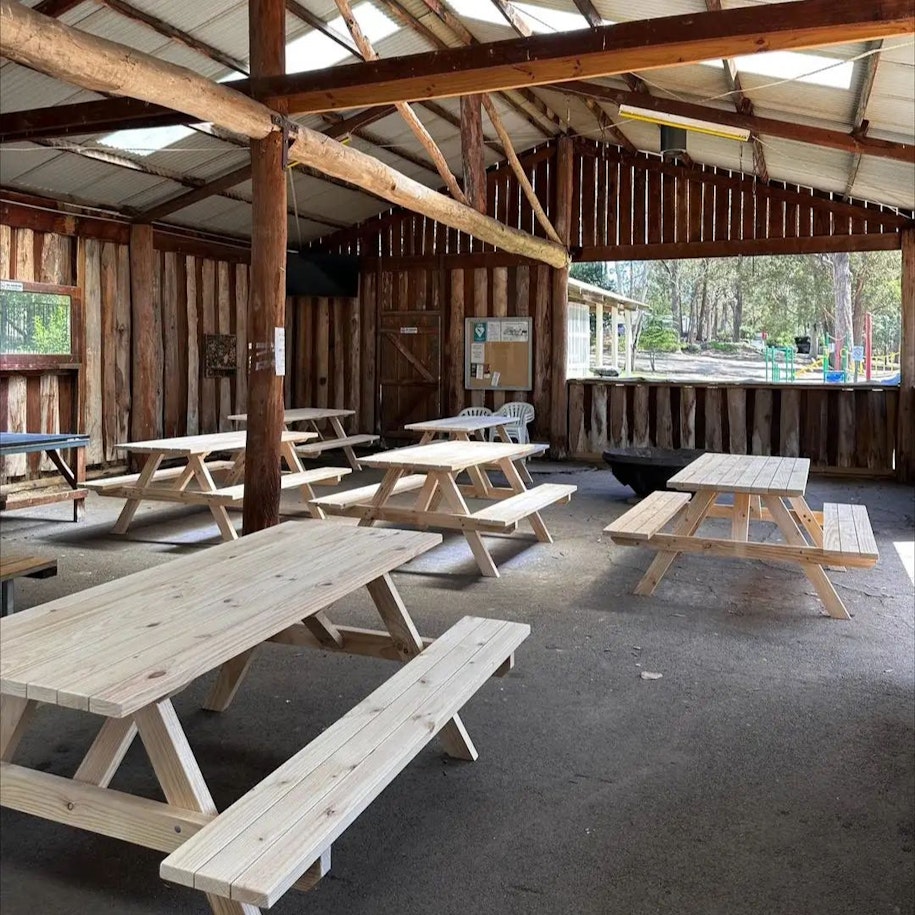 The park has a fully equipped camp kitchen, BBQs, and picnic tables for mealtimes, as well as clean amenities, laundry facilities, and a dump point. There are plenty of opportunities to have fun around the grounds, with a playground, recreation shed, and camp library. Roast marshmallows on the fire pit, dive into the swimming pool, and challenge your friends and family to a game of tennis, giant chess, or table tennis. Keep your eyes out for wildlife visitors, as you could see all sorts of native Australian animals, from echidnas at your feet to kookaburras in the trees.