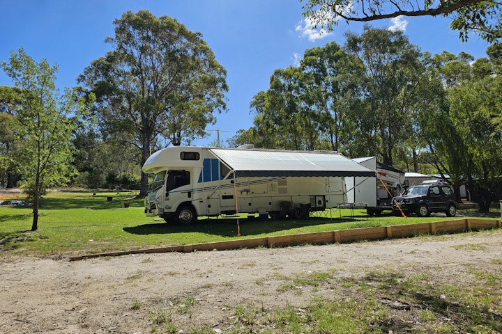 Sites 94 - 99 - These powered sites are grassed and provide ample room and easy access. Fire pits can be used on these sites, however they must have a paver underneath to avoid burning the grass. They are the closest sites to the off leash dog area. However, they are roughly 150m walk to the amenities block. They are suitable for any type of accommodation.