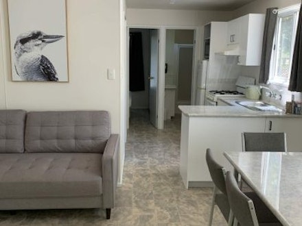 Our Bogong Cabins are fully self-contained. In the main living area, there is a TV, aircon, table and chairs and fully functional kitchen. The kitchen has a full-size fridge, microwave, kettle, toaster, cups, plates, utensils for all your cooking needs. It has two bedrooms one with a queen bed the other with two sets of bunk beds. As well as a bathroom with a shower and toilet. All linen is provided. Free WIFI.