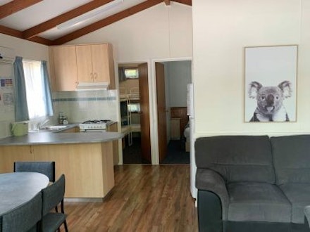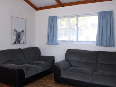 Our Supreme Villas are fully self-contained. In the main living area, there is a TV, aircon, table and chairs and fully functional kitchen. The kitchen has a full-size fridge, microwave, kettle, toaster, cups, plates, utensils for all your cooking needs. It has two bedrooms one with a queen bed and the other with two sets of bunk beds. As well as a bathroom with a shower and toilet. All linen is provided and free WIFI.
