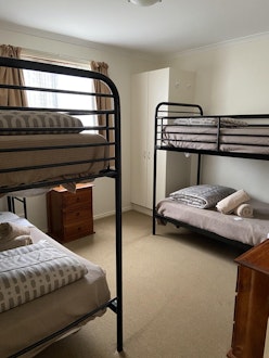 Our cabins are not pet friendly. The Buller Deluxe is ideal for families. This deluxe cabin combines fun and comfort, with space for relaxation. This two bedroom cabin hosts one comfy queen bed, two sets of bunk beds, a fully self contained kitchen and private bathroom. Linen and towels supplied for guests booked.
