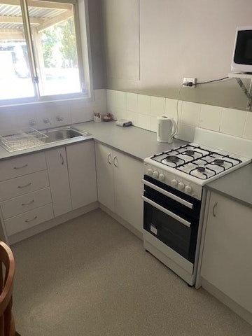 - Full kitchen with oven and gas stove, kettle, toaster, microwave, full size fridge, crockery & cutlery