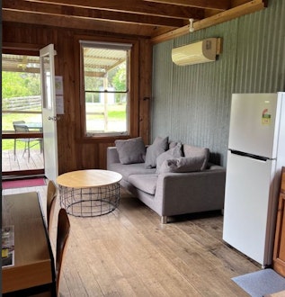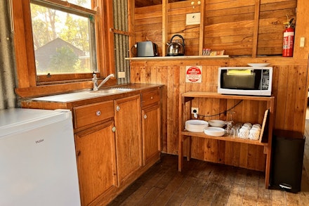 This cottage is a cosy old alpine cattlemen's hut that oozes rustic charm. Overlooking the boat ramp it has partial lake views. Kitchenette with a microwave, sink and medium size two door fridge, internal bathroom, master bedroom with double bed and bunk room with 2 sets of bunks.