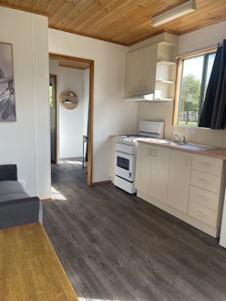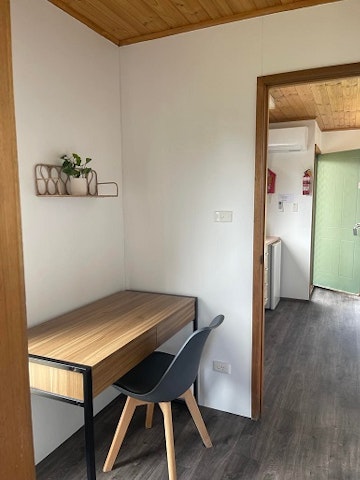Enjoy a peaceful stay in this lovely one-bedroom cabin, where you can relax and watch the beautiful birds in the park. The cabin includes a full kitchen, a private bathroom, and a workspace for your convenience. Please note that pets are not allowed.