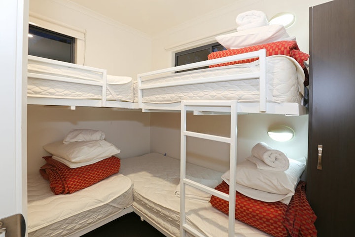 Fully self-contained with verandah. Queen bed & TV in main bedroom. 2nd bedroom has 4 single bunks. Full linen is provided on all beds. Overlooking the park these cabins come complete with LCD TV, DVD, ceiling fan in the main bedroom, split system A/C & large L shaped couch. Bathroom & separate toilet. Well equipped kitchen. Accommodates 2-6 people