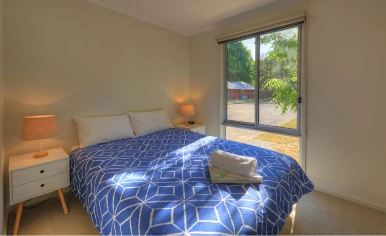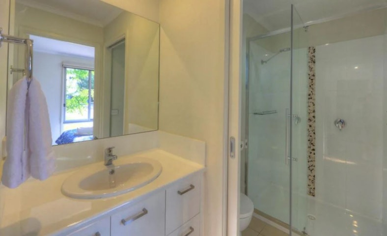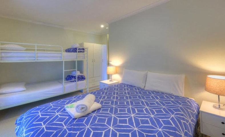 Our premium accommodation range of modern two bedroom Peppermint Villas provide a spacious and very pleasant option for up to 6 guests with a queen bed situated the main bedroom and a queen bed and one set of bunk beds in the second bedroom.