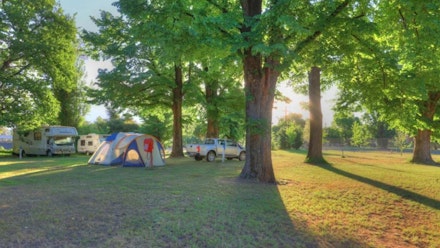 Level Grassed sites with good shade. The park is a 5 minute walk into town and there is the bowls club and town swimming pool adjacent to the park. A well equipped kitchen is close by to all sites and the park also has amenities which are in good condition.