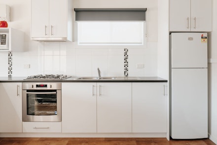 Our Two bedroom Deluxe Villas feature an Open plan living area with split system heating & cooling, TV/DVD player in the lounge area as well as a TV in the main bedroom, fully equipped kitchen and a large bathroom. The main bedroom has a queen size bed & the 2nd bedroom is either 2 single beds or a bunk bed & a single bed.