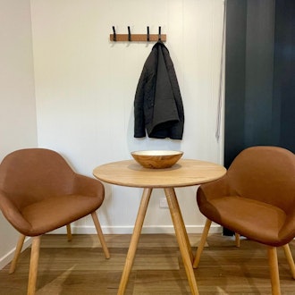 - Television, reverse-cycle air conditioner and two-seater table