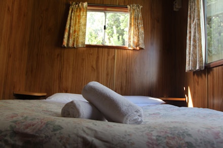 Ideal for families on a budget, without sacrificing the comforts of home. With an internal Ensuite, kitchenette, TV & DVD player plus heating and cooling. These cabins have a double bed in one bedroom, and the 2nd bedroom/ walk through alcove has 1 set of bunks. Bedding provided to Double bed - BYO all bedding for the bunk beds, or can be hired.