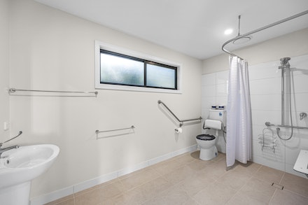 This modern spacious cabin is fully equipped with King Bed in each bedroom. These can be configured as two King Single beds. Each bedroom has a T.V. All beds are made. Full size kitchen with fridge/freezer, convection microwave and cooktop, cutlery, crockery. The bathroom area fully accessible including wheelchairs, towels for four. The living area has a table & comfortable dining chairs, large T.V. and Reverse Cycle Air Conditioner. Ramp access to entrance and covered deck, with outdoor setting & BBQ.