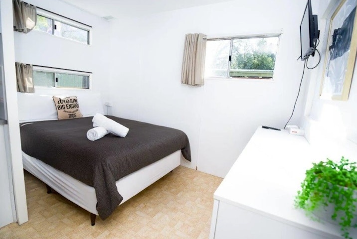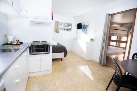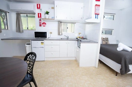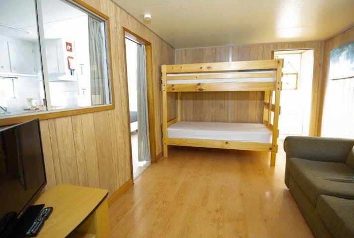 1 Double bed with 1 Bunk Bed (2 x single Beds) in adjacent room No Dogs Allowed , Sleeps up to 4 people , Kitchen facilities, split system air-conditioner. All Linen and towels are provided for the double bed. BYO pillows, sheets, blankets and towels for the bunk beds. For an additional fee single bedding can be hired from reception.