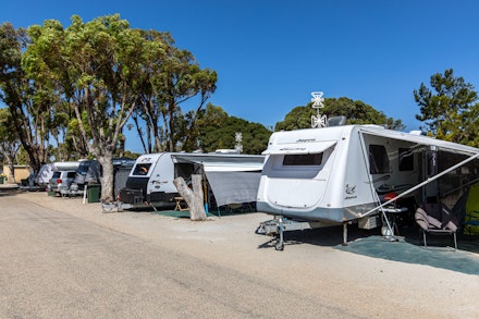 Powered caravan sites at Jurien Bay Tourist Park are hard standing with gravel. Some shady sites are available. Sites are suitable for caravans, motorhomes and campervans and are reverse-only sites.