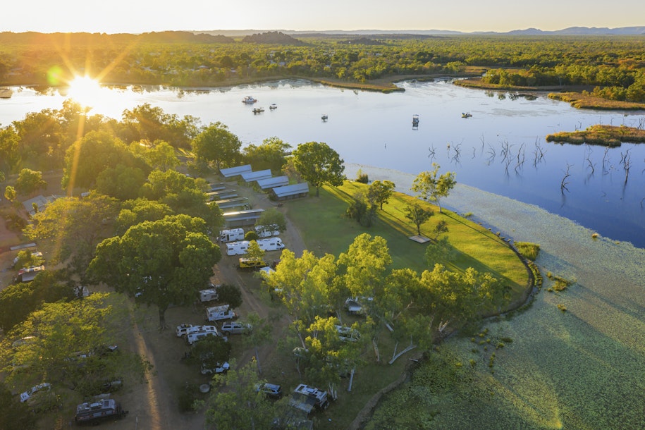 Lake Kununurra is the heart of the town and also the backdrop to Kimberleyland Waterfront Holiday Park.