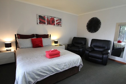 Our One Room Ensuited Chalets are popular with couples, offering a queen bed, self-contained kitchen with all cutlery and crockery including a fridge, freezer, microwave and cooktop. Television and DVD player for your enjoyment, as well as reverse cycle air. Shower and separate toilet, along with all linen and towels provided.