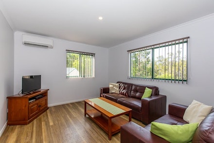 The three-bedroom holiday unit also includes parking for one vehicle.