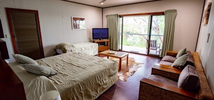Located along the banks of the beautiful Bindoola Creek and shaded by towering eucalyptus, Riverside Suite accommodation features floor-to-ceiling glass sliding doors with a direct view over the water.