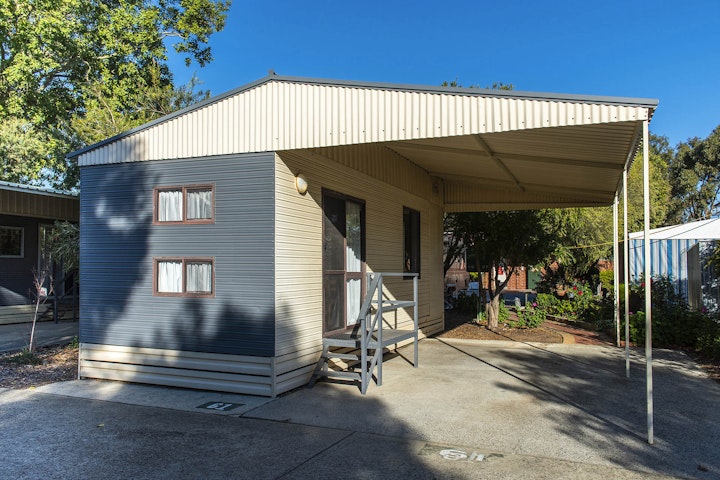 This older style fully self-contained open-plan cabin has its own ensuite and carport. It features one double bed and one set of bunk beds (2 single beds) and a kitchenette with microwave and fridge. The cabin also contains a TV, table and chairs and reverse cycle air conditioning/heating. The tariff includes all linen and towels. Complimentary tea, coffee and sugar are also provided to see you through for a few days.