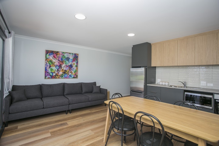 This fully self-contained chalet features 1 living room, 2 separate bedrooms king bed in bedroom one and a set of bunks (2 single beds) and a single bed in bedroom two and and 1 bathroom disabled access shower and toilet. The kitchenette/dining area includes a microwave, fridge, 2 burner hotplate and oven, flat screen TV , table and chairs and lounge. Along with reverse cycle air conditioning/heating. The tariff includes linen. Complimentary tea, coffee and sugar are also provided to see you through for a few days.