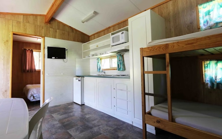 Check into one of our 4 standard park cabins with one bedroom. The high rakes ceilings give the cabin a spacious feel. Enjoy the activity in the park from your own deck veranda.