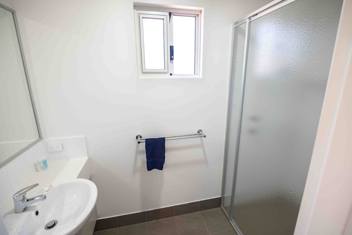 The master bedroom comes complete with a comfortable king bed, air-conditioning, an ensuite shower and separate toilet, built-in sliding double wardrobes with floor-length mirrors, and a television mounted to the wall. Fresh linen and a bath towel is provided for each guest.
