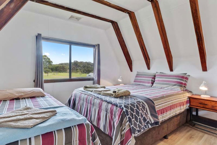'Foxtrot' sleeps up to seven guests, with three single beds in the downstairs bedroom, and a queen bed plus two single beds upstairs.